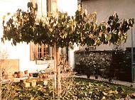 luxuriant, de très grandes feuilles découpées qui rappellent celles du platane. Son feuillage vert en été, dore en automne avant la chute tardive et rapide des feuilles. Sa cime est large et arrondie, son port étalé, des tailles régulière et des haubanages, nous a permis d'en faire un parasol naturel. |